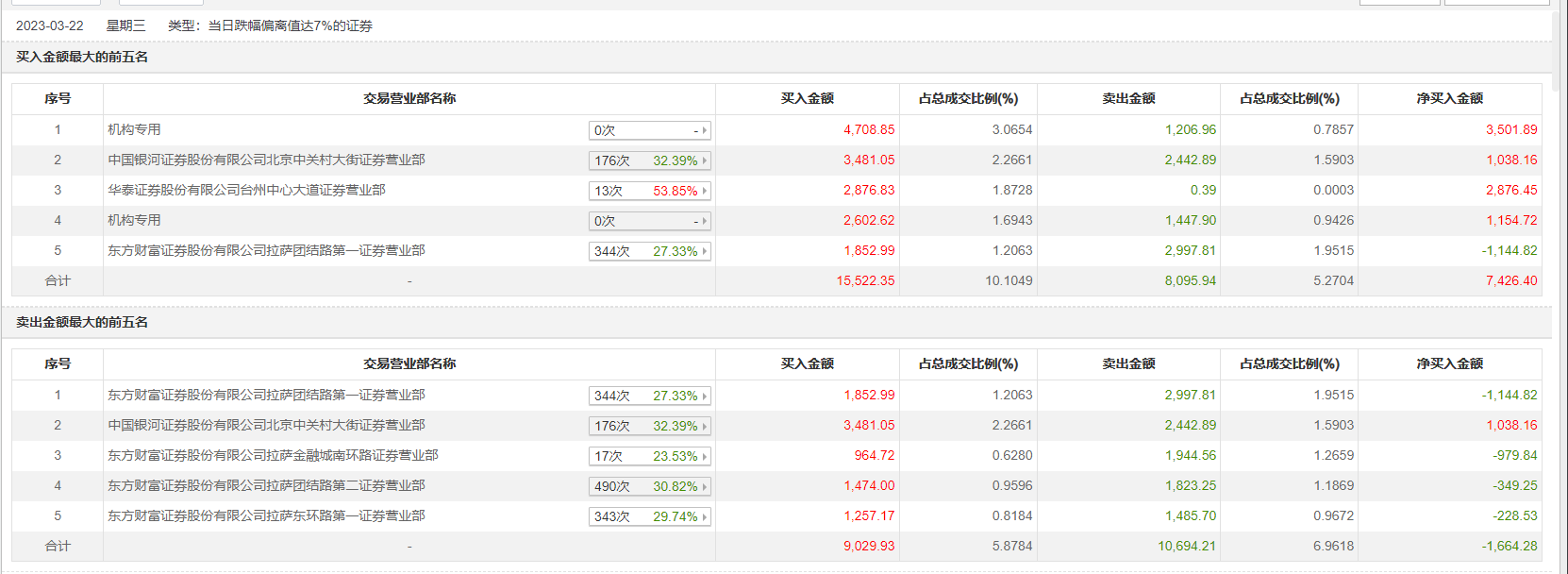 3月22日,中润资源今日跌7.09%,龙虎榜数据显示,上榜营业部席位全天成交3.26亿元,占当日总成交金额比例为21.2%。其中,买入金额为1.92亿元,卖出金额为1.33亿元,合计净买入5868.78万元。