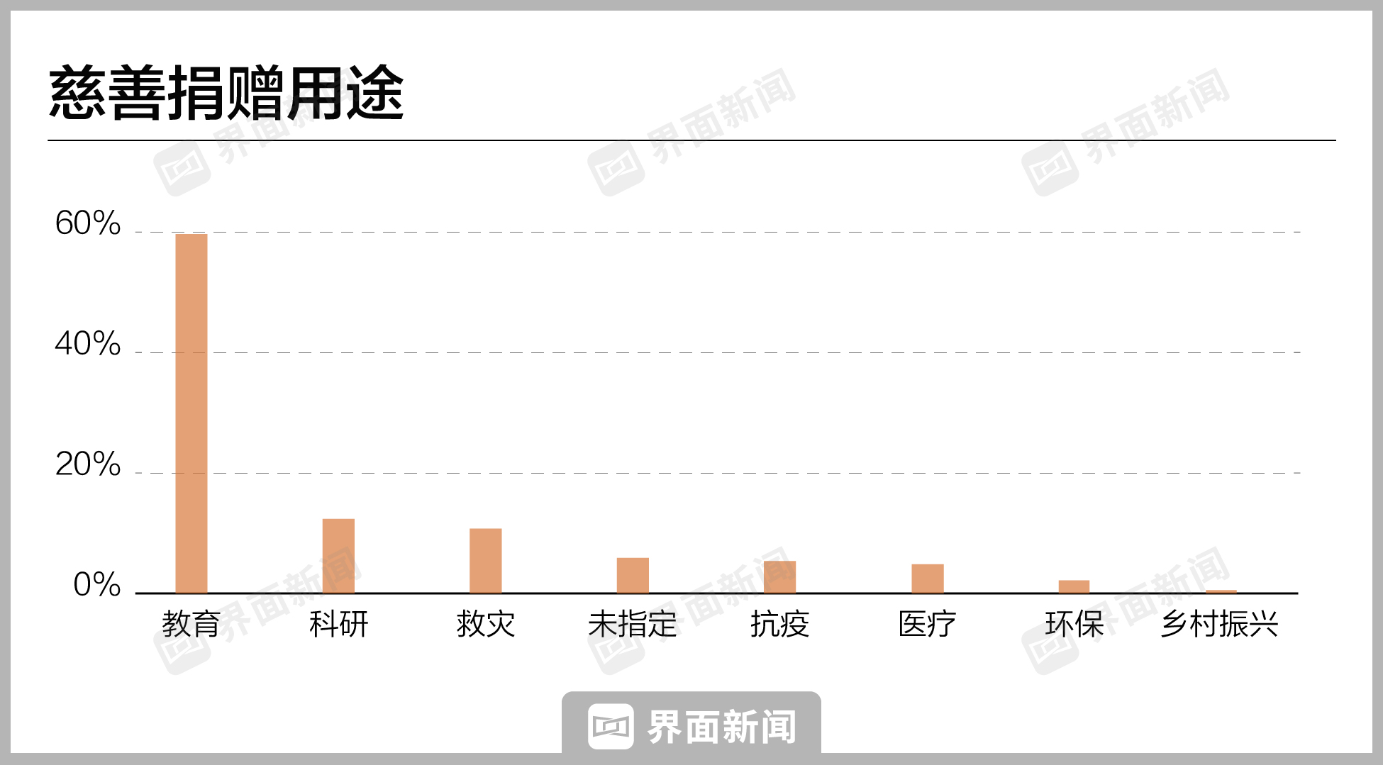- 上榜统计中,59.64%流向教育,科研和救灾分别占比12.11%和10.36%。