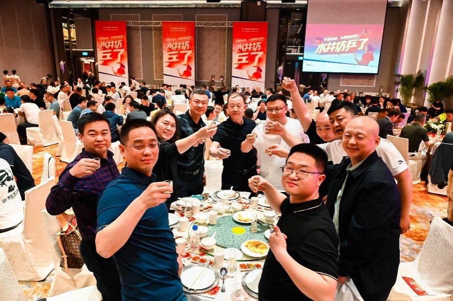 赛后,水井坊为庆祝国乒胜利安排了一场庆功宴,这场热闹的聚会除了乒乓庆功的主题,还有来自祖国的美酒——水井坊。