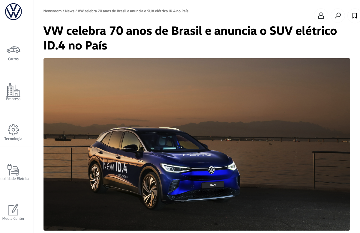 3月23日,大众汽车宣布在巴西推出电动SUV车型ID.4,将于今年下半年在巴西正式上市销售。