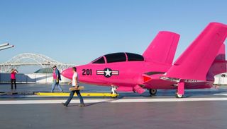 这架“美洲狮”据信是第一架涂成粉红色的战斗机,具有象征意义的粉色并不会永久保留,在活动结束后人们将会使用清洗剂让其重返低调的灰色。