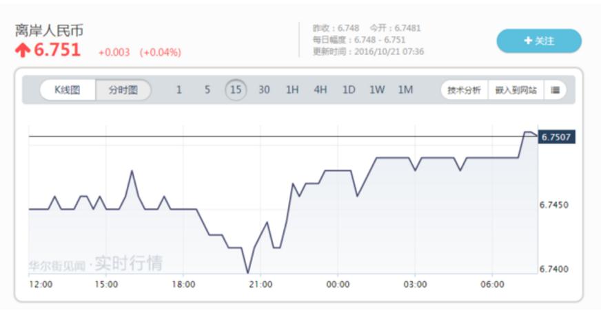 国庆过后的人民币贬值还在持续。离岸人民币对美元亚太早盘失守6.75关口,再创1月7日来新低。昨日在岸人民币兑美元夜盘小幅收跌,报6.7457元。