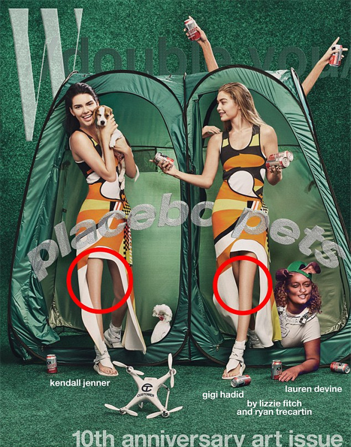 肯达尔·詹娜和吉吉·哈迪德的最新时尚大片新鲜出炉!这次的拍摄成品无论是从色彩、构架和创意都称得上是别具一格,不过因为后期编辑的失误,两位美女模特的膝盖都被P没了!