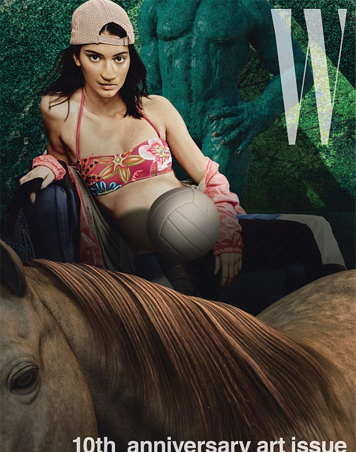 艺术家 Lizzie Fitch与Ryan Trecartin,将肯达尔和吉吉塑造成名为"Placebo Pets"的装置艺术,让两人变身成为“人形宠物”。因此,图片后期成为了极其重要的一部分,因为要利用电脑合成为两位美女加上巨大的鼻子以及其他动物化的特征。