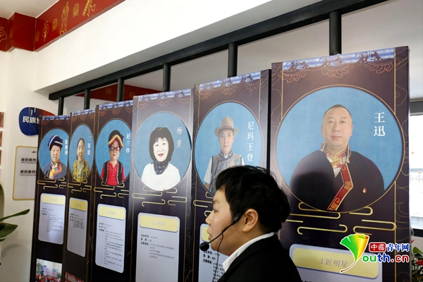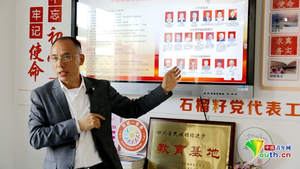 廖雪春向记者介绍民族调解达人。中国青年网记者 王金海 摄