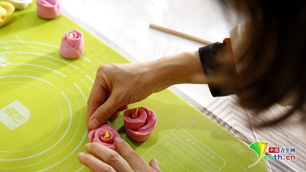 “智慧妈妈团”在学习新式糕点。中国青年网记者 王金海 摄