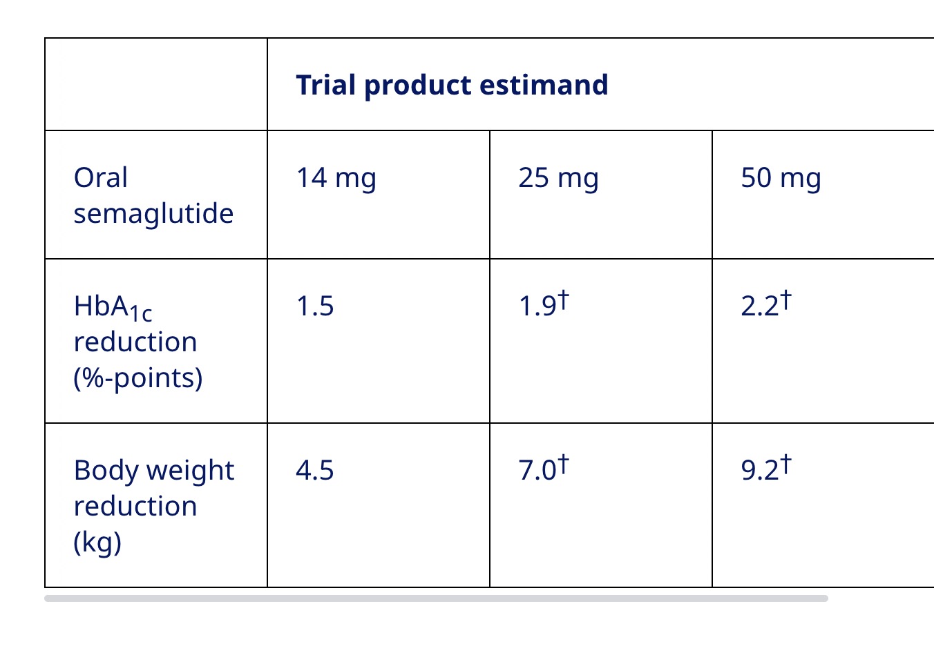 此次研究是一项针对口服司美格鲁肽的为期68周的3b期疗效和安全性试验。受试者每天一次服用25mg或50mg剂量的口服版司美格鲁肽,作为用于需要加强治疗服用1-3种口服抗糖尿病药物的2型糖尿病患者的补充。