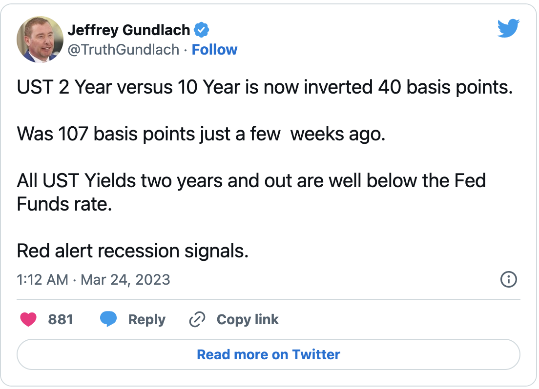 “投资者正在寻求避险收益,因为他们担心银行业压力和金融状况收紧,担心商业房地产行业,而且人们普遍认为,目前美联储和英国央行已使政策利率过深进入限制性区域,”花旗集团全球市场美国利率策略师奥唐纳(William O'Donnell)表示。