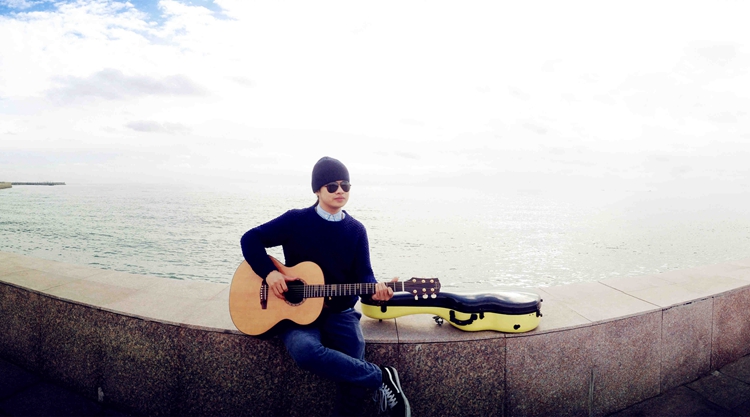 “小的时候,七八岁的样子吧。有台亲戚家的录音机在家里,正好有个空白磁带,就每天来回录觉得特别好玩。当时还没见过真正的吉他,就拿了块木板钉上钉子然后系上皮筋,就瞎拨弄。”