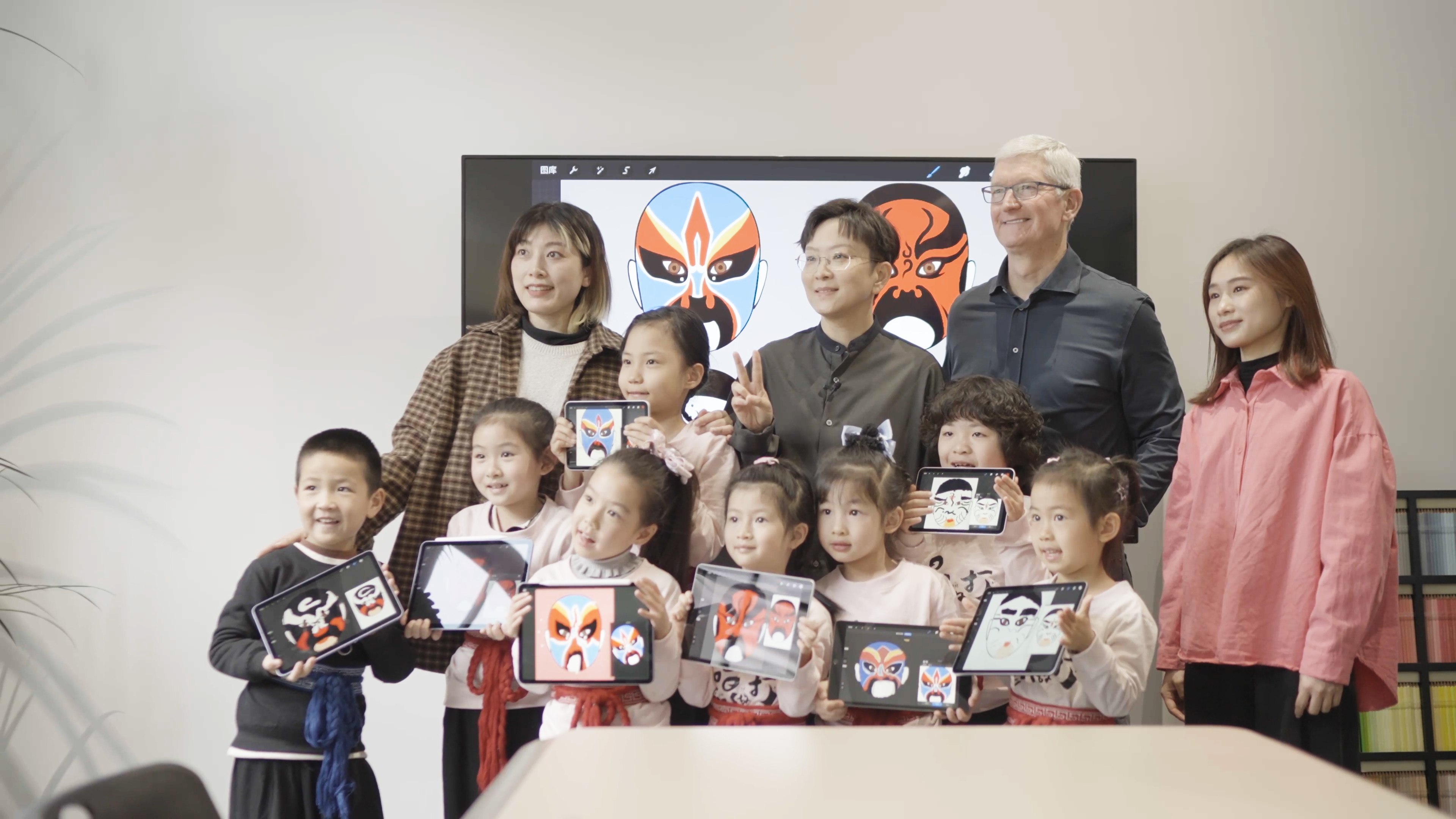 “Wow,Amazing!”当看到小朋友们在iPad上绘制的京剧脸谱时,苹果CEO蒂姆·库克(Tim Cook)发出了这样的感叹。