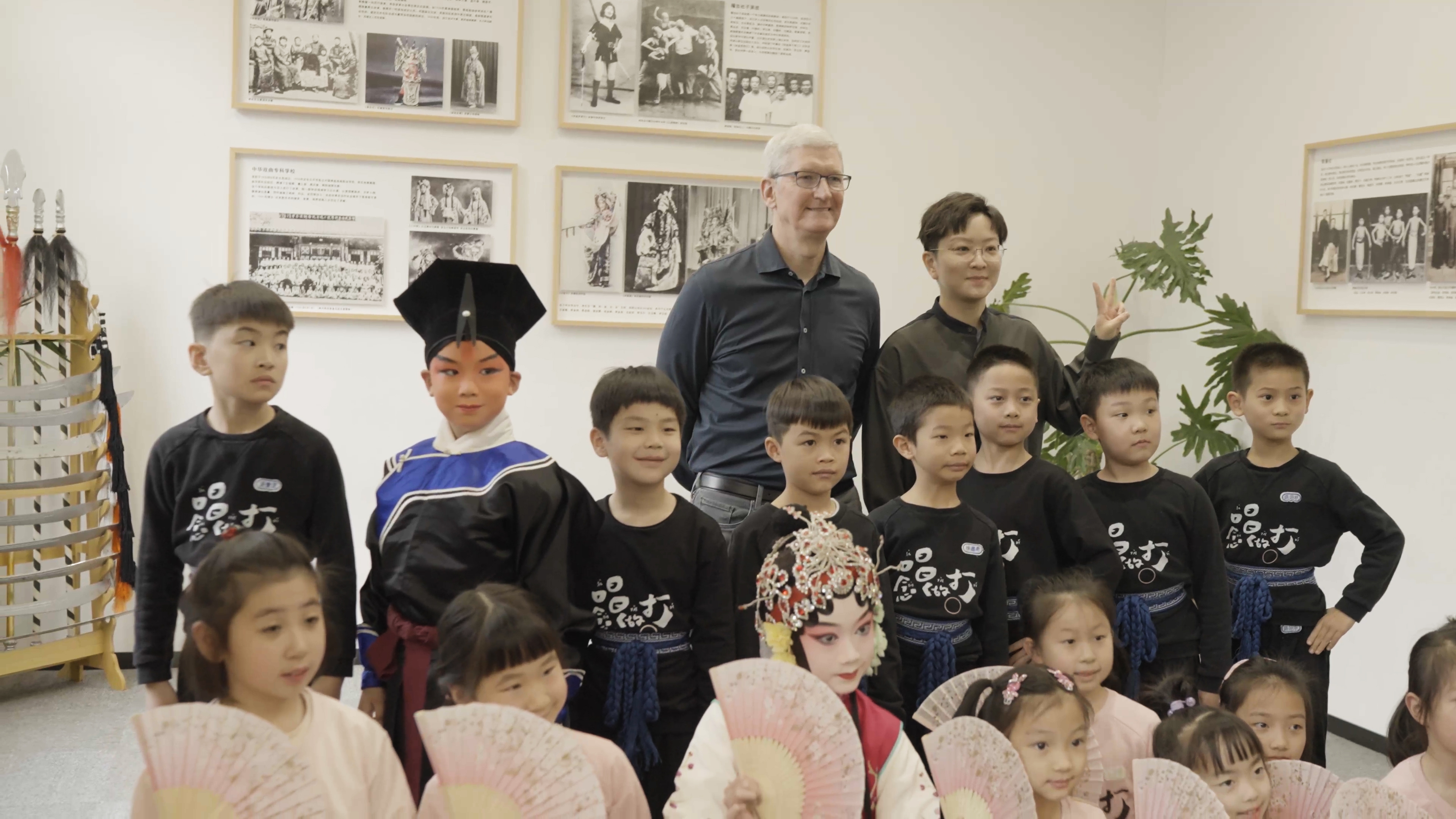 3月29日,作为近期中国行的一部分,库克到访了这个由上海京剧院国家一级演员、余派老生第四代传人王珮瑜所创办的京剧工作室,许多孩子在此学习京剧。