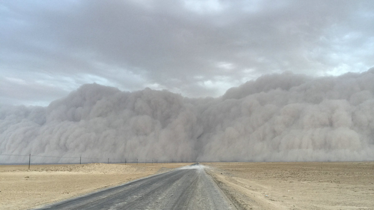 2016年6月份,大概夏至那一天,我们从楼兰城里出来,刚到一条简易公路上,就看到远方像山一样的东西,我当时以为是阿尔金山。可是,这里离阿尔金山还有好几百公里,无论如何看不到啊!过了几分钟,发现这座山在慢慢的移动,原来是一场巨大的沙尘暴。我就问当地司机,要等多久沙尘暴会过去?他说,大概两个半小时。没想到我们在车里足足等了八个半小时,其间伸手不见五指。沙尘暴里面还有巨大的雨点,打在车窗玻璃上,非常恐怖。这也是因为罗布泊地区环境恶化,寸草不生,固定不住沙尘。