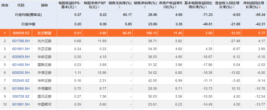证券行业作为金融市场的“晴雨表”也受到了重创。截至2022年三季度,行业整体营业收入同比下降6.63%,净利润更是“腰斩式”下滑,降幅达65.34%,仅有三家正增长,位列第一的就是东方财富证券。