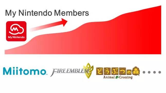 而老任的相关人员在这点上也并无特地避讳,宫本茂、已故社长岩田聪和现任社长君岛达己均在多个公开场合表达过这样的愿景。在2015财年报告社长君岛达己与资方的对答摘要中,还有这么一张特别“理想化”的图片,意指在接下来的多款官方手游--包括《Miitomo》、《火焰纹章》、《动物之森》--的影响下,越来越多的手游用户会受任天堂式的游戏感染,成为任天堂的忠实玩家(My Nintendo相当于就是PSN或者暴雪战网吧)。