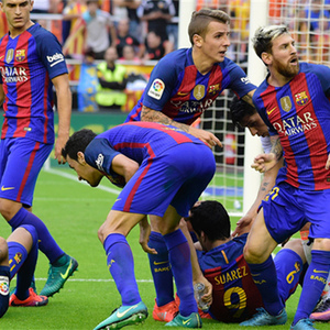 第62分钟,稳住阵脚的巴萨扳平比分。巴萨右翼角球开出,拉基蒂奇头球冲顶被迭戈·阿尔维斯奋力封出,禁区左肋苏亚雷斯补射远角破门,2-2。刚刚领取了上赛季欧洲金靴奖的乌拉圭人本赛季已经打入7球,暂时超越6球的梅西与格列兹曼,位列西甲射手榜头名。