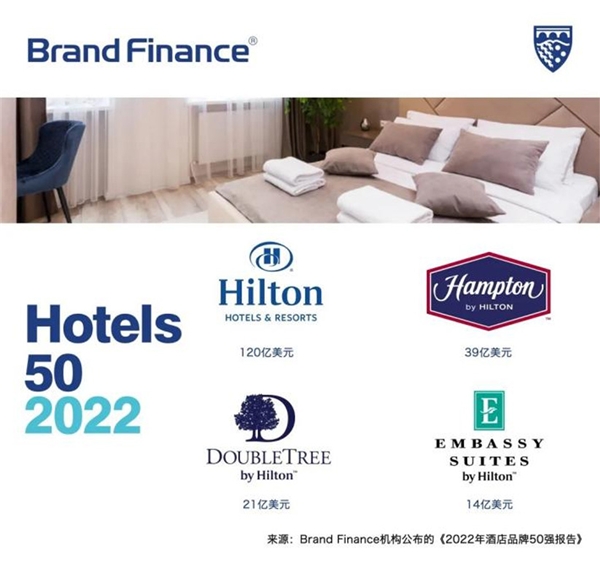 2022年6月,Brand Finance发布的《2022年酒店品牌50强报告》中,希尔顿欢朋品牌凭借超39亿美元的品牌价值连续蝉联“全球最具价值酒店品牌”榜单TOP5,位列第四位,排名仅次于希尔顿集团旗下希尔顿酒店及度假村品牌。2022年酒店50强排名的所有品牌中有2/3的品牌尚未恢复,仍低于2020年以前的估值。相比较,希尔顿欢朋品牌不减反增,品牌价值增长至37.2%,达到超39亿美元。