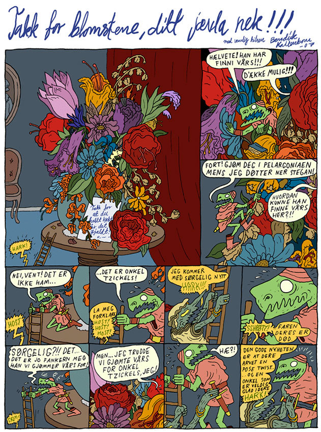 与Terje相识也是因为漫画,虽然两人是在唱片店巧遇,但连结着两人友谊的是分享低级幽默与漫画,Kaltenborn经常会将自己画的同人志给Terje看,所以当Terje要出EP时,马上想到了Kaltenborn的设计。
