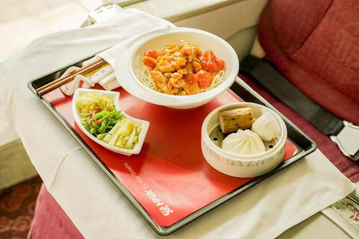 此次海南航空精品快线主打 “不一样的飞机餐”。自4月1日起,海南航空精品快线经济舱将为旅客提供迎宾饮品,并提供中西式热餐选择,增加餐后甜品或小吃服务,在北京出港经济舱推出地域美食海航香菇肉燥饭、斑斓黄桃瑞士卷;海口出港经济舱推出海南抱罗粉、斑斓卷;广州出港经济舱配备猪肉酱肠粉、红豆双皮奶。此外,为持续打造高品质餐饮服务体验,海南航空精品快线还将于4月1日起全面上线新款葡萄酒,包含来自法国波尔多法定产区(AOC)干红,阿根廷最知名的马尔贝克干红和产自智利的长相思干白,让旅客在旅行途中尽享美酒佳酿。