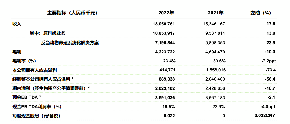 3月30日,优然牧业发布2022全年业绩公告,实现总收入180.51亿元,同比增长17.6%,归属母公司净利润4.15亿元,同比下降73.38%
