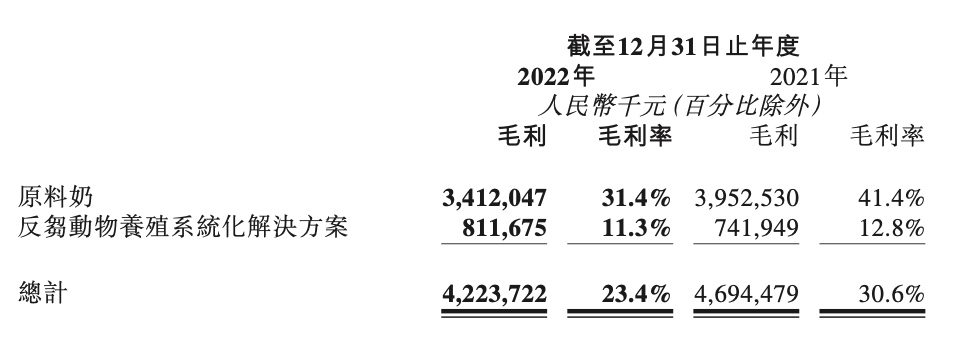 优然牧业还表示,反刍动物养殖系统化解决方案业务的毛利率由 2021年期间的12.8%下降至报告期间的11.3%,主要由于原料价格上涨导致销售饲料毛利率下降。