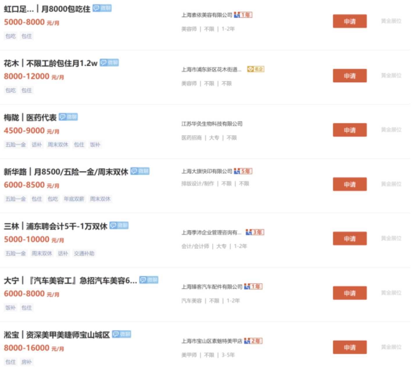 下图来自58同城的上海招聘热搜职位截图: