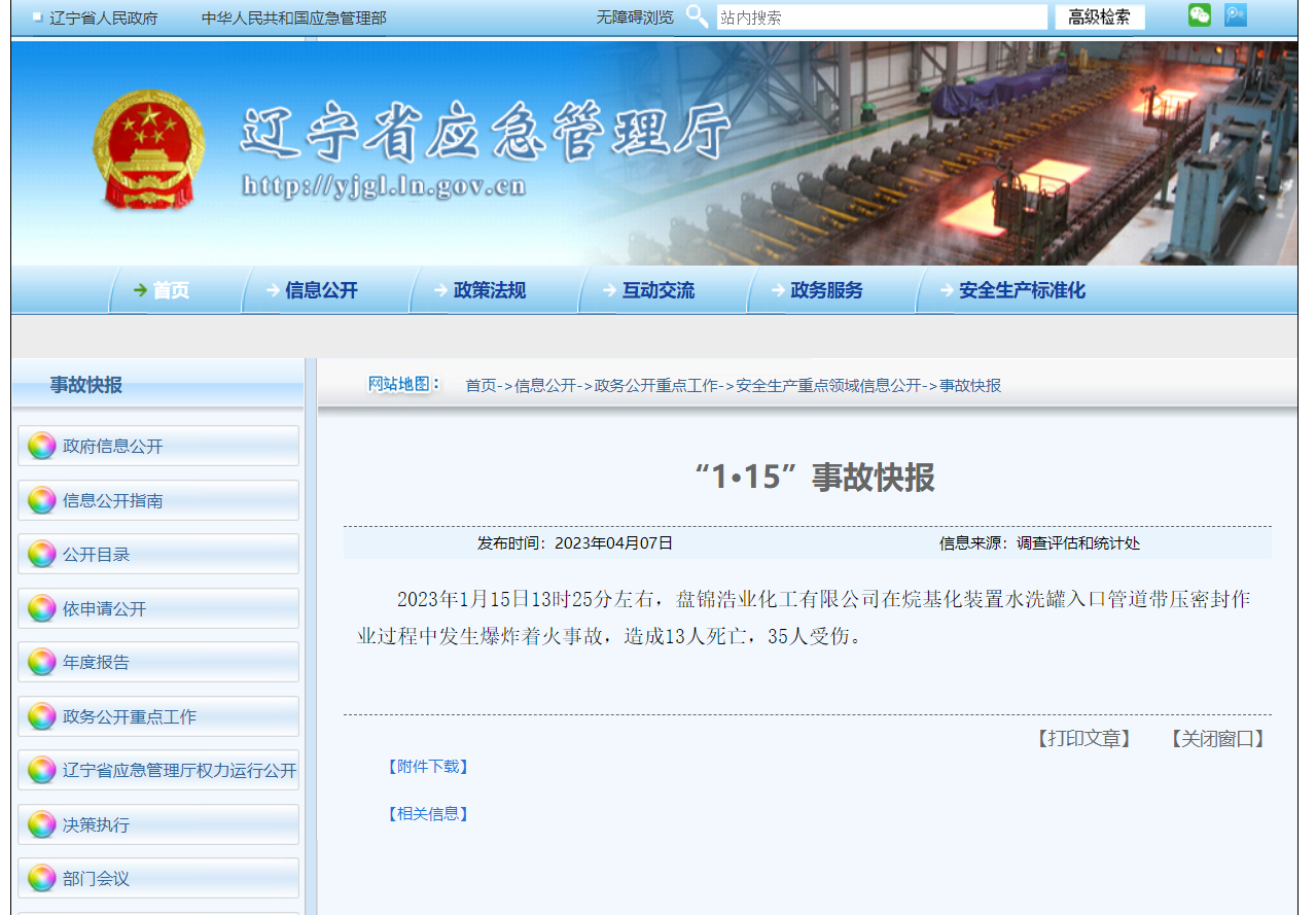4月7日,辽宁省应急管理厅网站公布“12·1”“12·31”“1·15”三起安全生产领域事故快报。