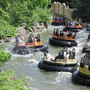 公开资料显示称,该乐园的经典项目“雷河泛舟”于1986年建成投入使用,最受全家出行的游客欢迎。每一个橡皮艇能容纳6人,以每小时45公里的速度穿过一条人工河流。
