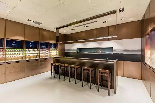 设计师还大胆决定将咖啡、红酒甚至雪茄的消费习惯融入到这个茶店的设计中。比如为店内设置了吧台式饮茶空间,让客人可以在购买之前先自己品味一下。