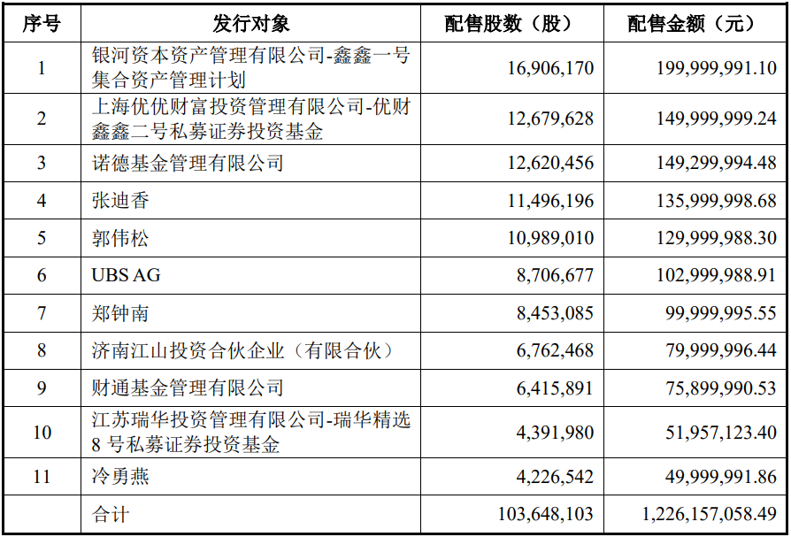 奥飞数据4月10日公布2022年度向特定对象发行A股股票发行情况报告书,此次发行股票的发行价格为11.83元/股,发行数量为1.03亿股,募集资金总额约为12.26亿元。诺德基金获配1.49亿元,UBS AG获配1.03亿元,财通基金获配7590.00万元。