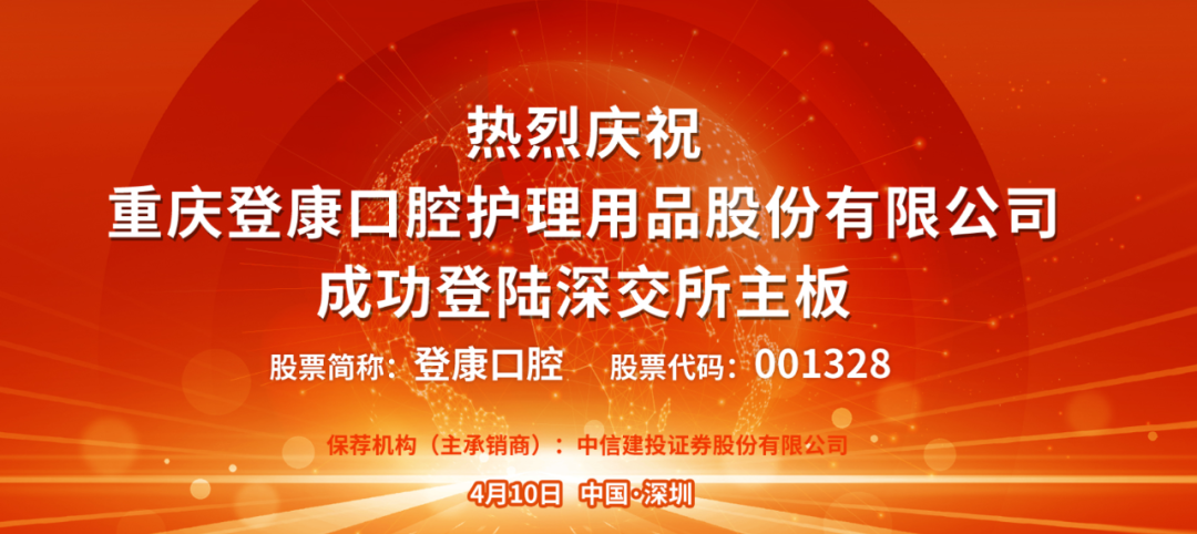 4月10日,抗敏感牙膏品牌冷酸灵母公司重庆登康口腔护理用品股份有限公司(以下简称“登康口腔”)在深交所主板敲钟上市,股票代码为001328。