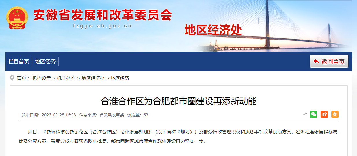 4月,合肥天气渐暖,万物更新,合淮合作区也“热气腾腾”,迎来了新的进展。4月10日,记者从安徽省发改委获悉,《新桥科技创新示范区(合淮合作区)总体发展规划》(以下简称《规划》)及部分行政管理职权和执法事项改革试点方案等获得批复。此次规划透露了不少创新举措,到2025年,合淮合作区生产总值有望达100亿元。
