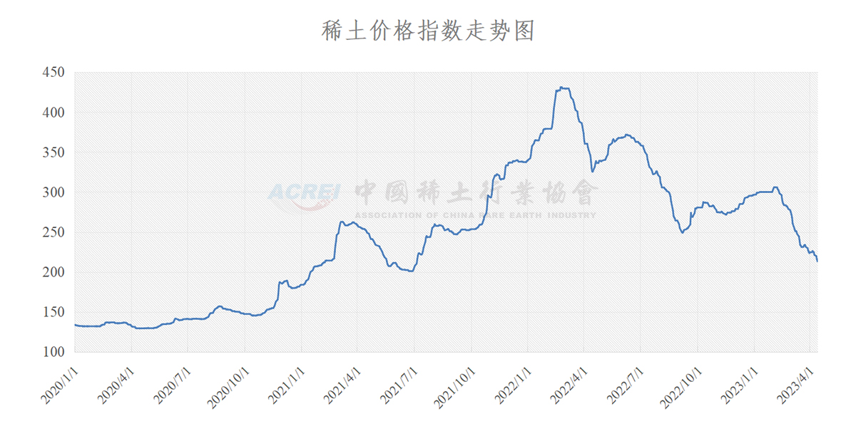 据中国稀土行业协会,4月12日,稀土价格指数报213.1,较前一日下跌2.7点。
