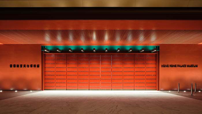 筹备五年,香港故宫文化博物馆于2022年7月正式向公众开放。博物馆大楼像摆放在海边的一尊巨型金鼎,铺满玻璃门钉的大朱红色正门、外墙如琉璃瓦般的带孔铝板与两千多公里外的紫禁城遥相呼应。在大都市纵向发展的紧密秩序中,建筑设计师将中轴线的DNA立体铺陈,串联起不同空间,展示出对传统美学和故宫文化的全新演绎。