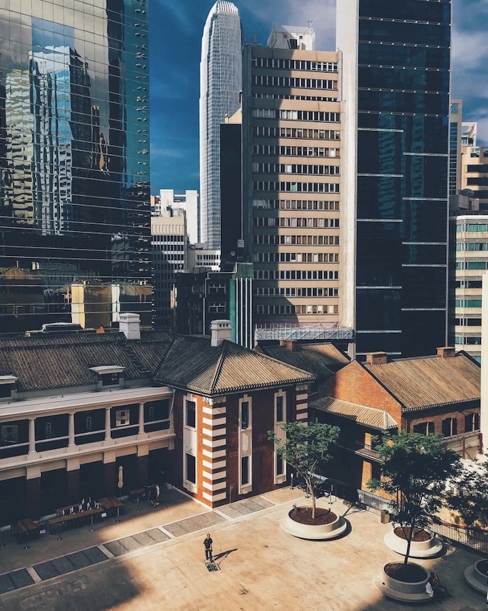 “大馆”是昔日警务人员和公众对前警察总部以至整个建筑群的简称,集中了“执法铁三角”的中区警署、中央裁判司署和域多利监狱。从无人机视角来看,中环荷李活道上这片被围墙包裹的古迹保护建筑群,是位于世界上人口最密集城市之一的市中心罕见的“庭院”,也是一个半世纪间香港巨变的见证者。