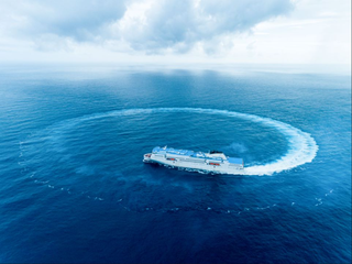 这是中国船舶集团广船国际为意大利MOBY Line航运公司建造的2500客/3800米车道豪华客滚船“MOBY FANTASY”号轮,船长237米、型宽33米,服务航速约23.5节,交付后将在地中海沿岸的意大利热那亚、奥尔比亚以及里窝那之间的航线运营。