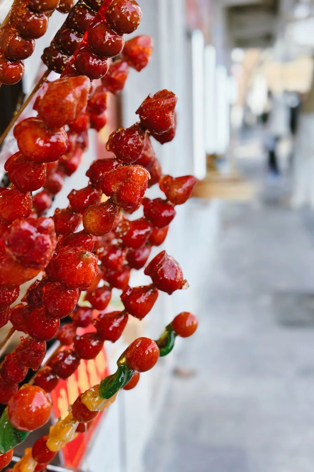 说到糖葫芦,中国的北方是一个绕不过去的地方。在那个一切皆可冻的地方,一切还皆可“糖葫芦”。