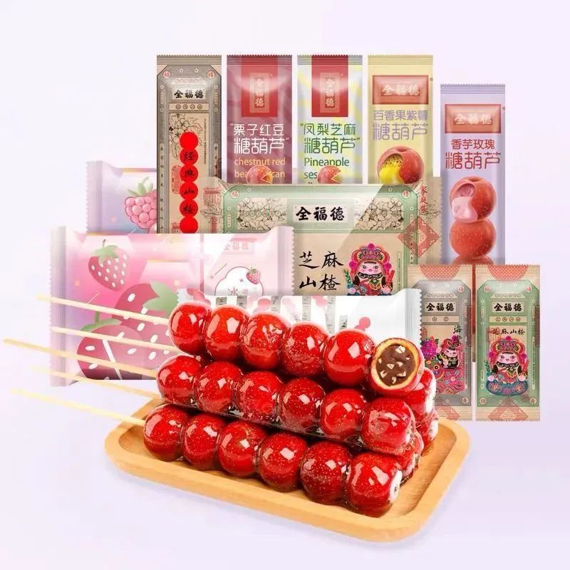 后来,北京的一些老字号零食品牌门店里,小包装的糖葫芦开始出现,并且和茯苓夹饼等零食一起成为土特产走出当地,走向全国。