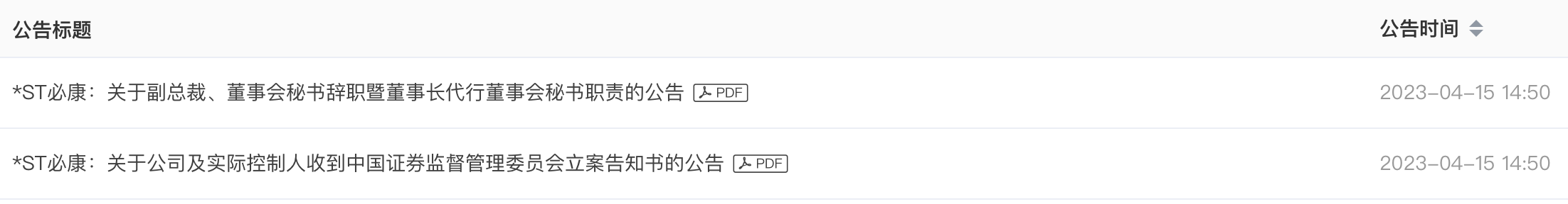 4月15日周六下午14点50分,*ST必康(002411.SZ)披露了一份利空消息。