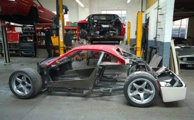 从上图可以很明显地看出F40的车体设计主要以钢管为主,再搭配单体结构的驾驶舱,设计理念和今天的超跑非常类似。