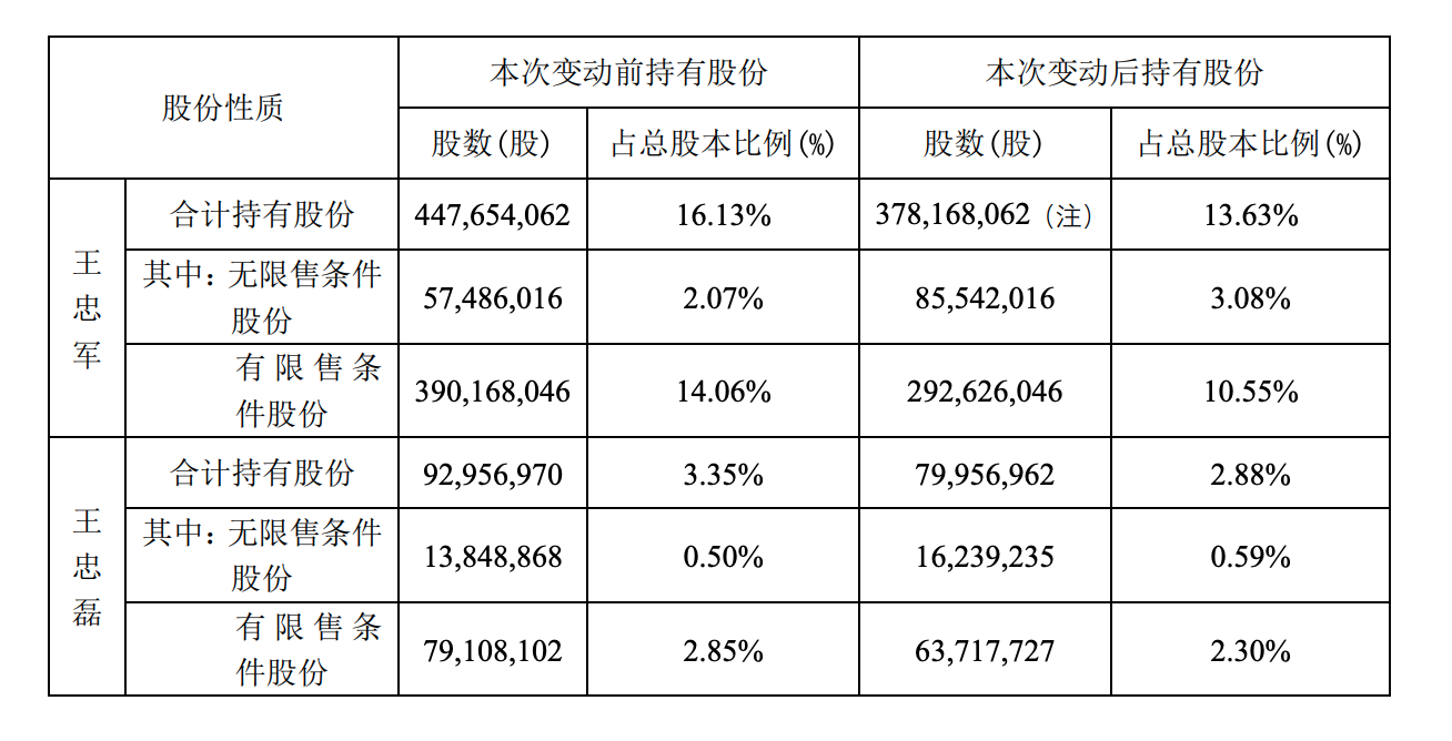 截至最新减持公告发布,王忠军和王忠磊仍为华谊实控人,二人共持有16.51%公司股份。其中,王忠军持有13.63%,王忠磊持有2.88%。