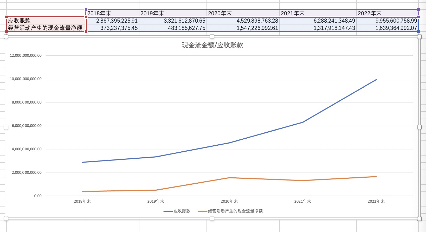 那么迪安诊断在常态化核酸筛查期间赚钱的钱去哪了?这部分营收都转化成了迪安诊断的应收账款。迪安诊断的应收账款从2018年末的28.67亿元,占总资产比例的26.89%,激增至2022年的99.56亿元,占总资产比例的47.28%。