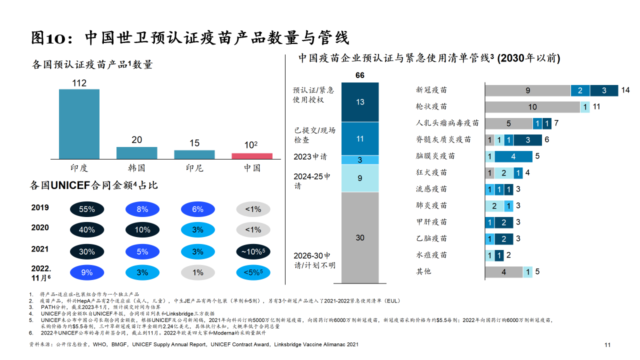 近日,中国疫苗行业协会疫苗国际合作促进会(CPIVC)发布《中国疫苗行业国际合作发展报告2023》(下称《报告》),其中指出,目前各国获世卫组织预认证疫苗产品数量上,中国只有10家,在数量上不仅少于印度的112家、甚至也少于韩国的20家和印尼的15家。