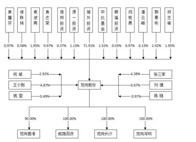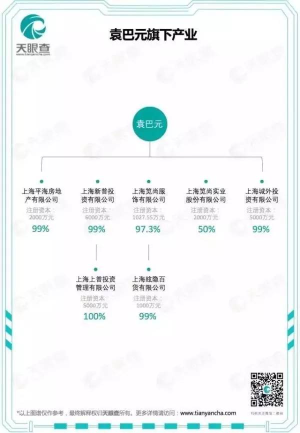 时尚资本道(ID:Fashion-Finance)发现,尽管上图中没有袁巴元的名字,但城外投资为他百分百控制,所以袁巴元才是笕尚的实际控制人。