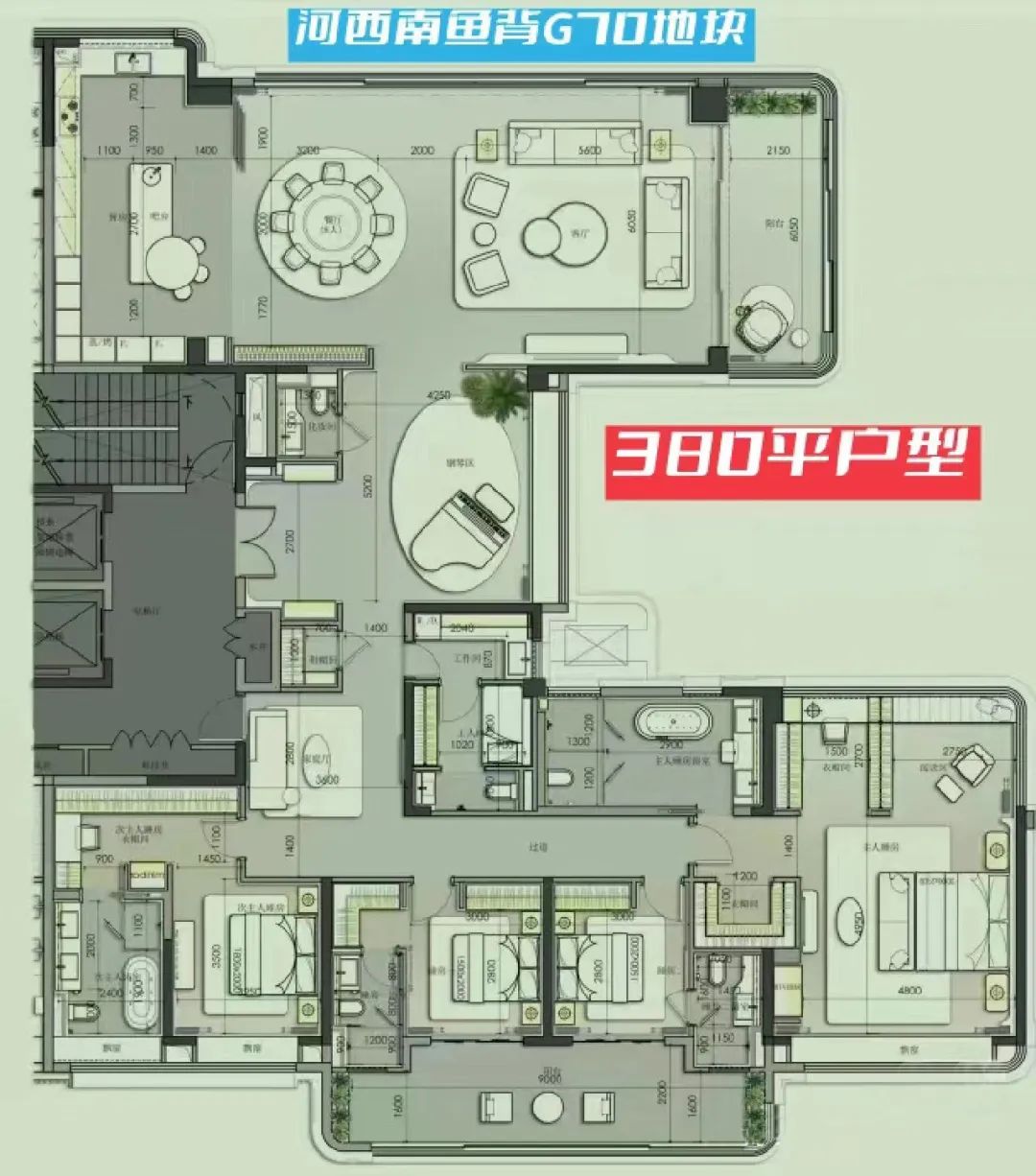 值得关注的是,该地块起始楼面价达到37602元/㎡,最高楼面限价达到43034元/㎡!毫无疑问,这将又是一块决定河西未来房价走势的“高价地”!此外,周边豪宅遍地,即将上市的中宁府和厦门国贸G70项目都是以300-628㎡瞰江大平层,据悉,G70预计总价2200万起,中宁府预计含包均价在7万+/㎡。