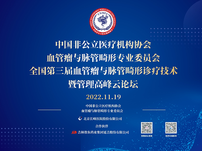 另据中国非公立医疗机构协会官网,2022年11月,中国非公立医疗机构协会血管瘤与脉管畸形专业委员会第三届全国血管瘤与脉管畸形诊疗技术暨管理高峰云论坛在线召开。该会议正是由北京长峰医院集团承办的,会议讨论的是血管瘤与脉管畸形领域现状、发展趋势、最新技术等。