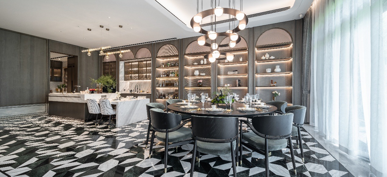 在产品打造上,建面约700㎡湖境墅王,沿用懋源独创的“功能空间分层”设计,特邀国际著名设计师吴滨创立的WSD世尊担纲设计定制精装服务。一层一境,9.1米宽幕瞰景会客厅,阔绰尺度迎合峯层家族对空间至上的极致追求,让东方气韵在现代手法下开花,沉稳低调却又不乏精致与贵气。