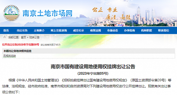 此外4月11日,南京土地市场网发布《南京市国有建设用地使用权挂牌出让公告》(2023年宁出第05号),根据公告显示,共有11幅地块挂牌出让,共约37.75公顷,起拍金额超142.33亿,公告地块将于5月10日上午9:30开始网上限时竞价公开出让。