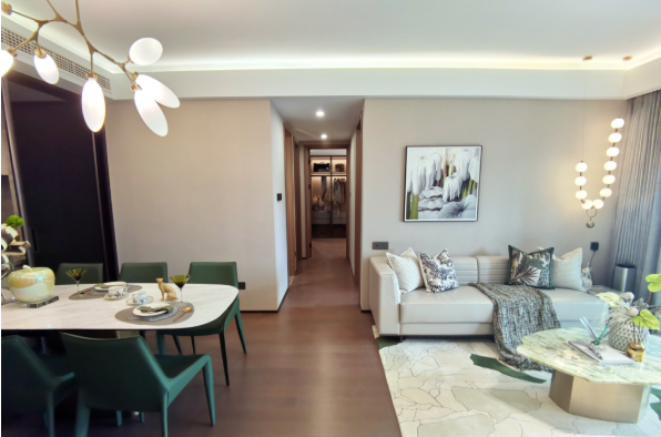 据悉,项目没有升级装修包,基础装修标准不低。配置日立中央空调、拓力新风、威能锅炉地暖、厨房博世三件套+洗碗机,弗兰卡大单水槽+可抽拉式水龙头,卫生间科勒台盆、洁具、马桶,入户钢木复合门+美的智能门锁......装修风格现代简约。(具体交付品牌以开发商最终发布为准)