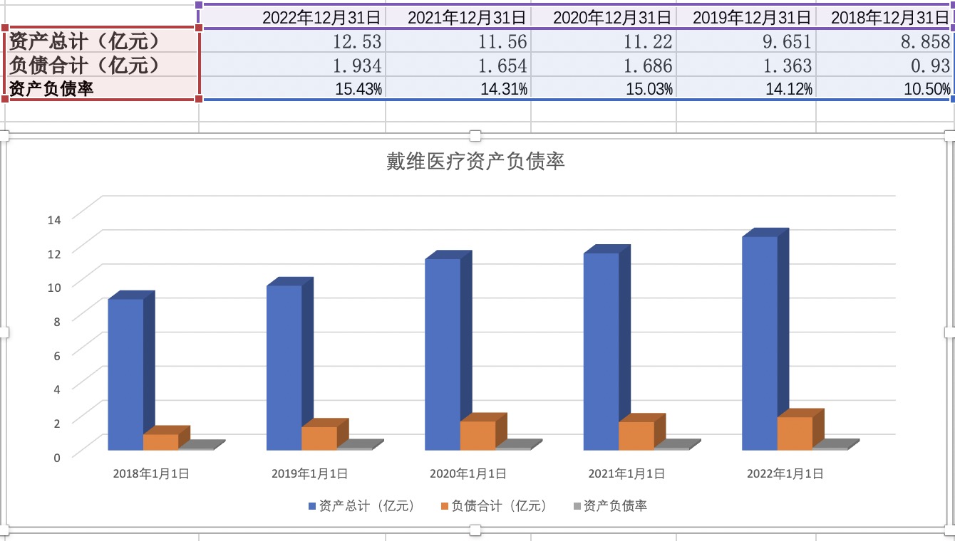 戴维医疗一直因较好的资产负债率,被市场结构誉为“小而美”。从2018年至2022年,戴维医疗的资产负债率一直维持在20%以下。不过,在近年来看有提升的趋势。