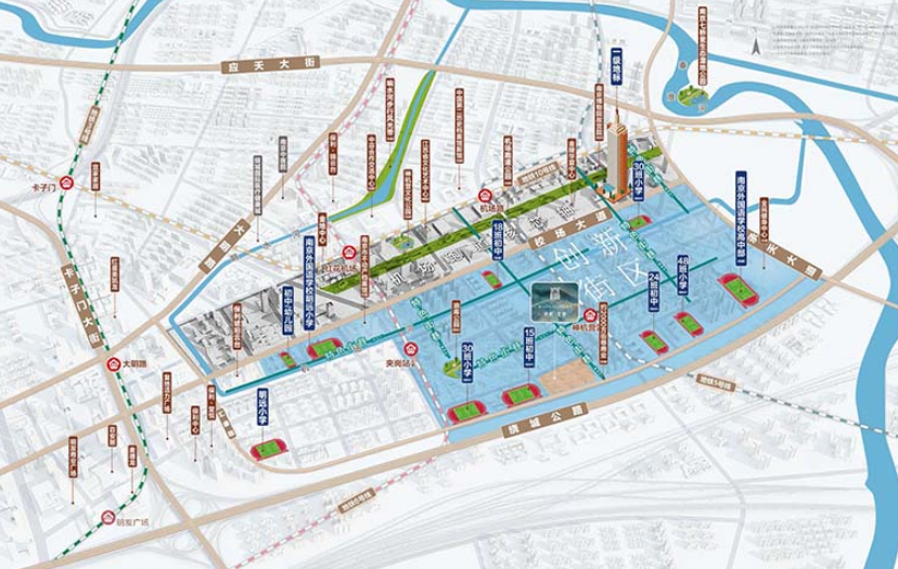 地块东侧已建成南京外国语学校,西南侧规划有初中、小学各1所,可充分满足片区教育配套需求。地块西北侧为在建的国际路居住社区中心,西侧为在建项目中江建筑智慧产业园和2021G121综合体项目,为周边居民提供便利的配套服务。